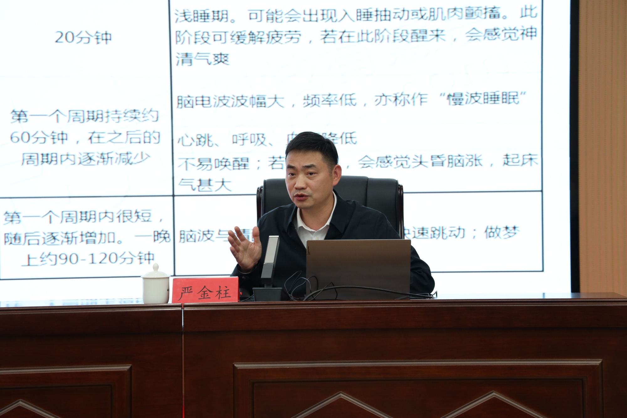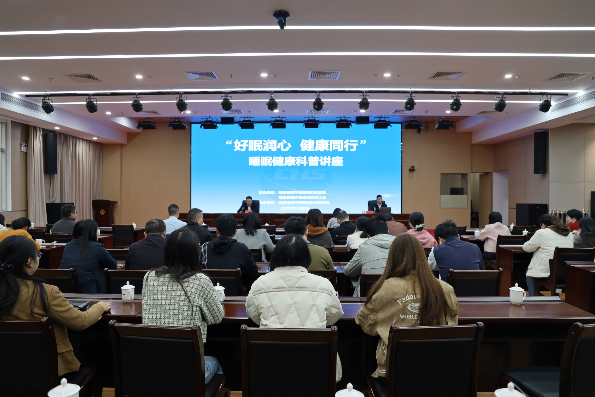 本次讲座特邀福建省级机关医院副院长、中国睡眠研究会睡眠障碍专业委员会委员严金柱,以“良好睡眠与您同行”为主题授课。严主任从睡眠生理机制切入,深入解析入睡难、睡眠浅等常见问题成因,用通俗语言解读医学原理,课堂上还与大家一起探讨如何通过优化睡眠习惯提升工作效率和生活质量,为干部职工身心健康保驾护航,助力干部职工以更饱满的精神状态、更健康的身体状态投身医保事业。